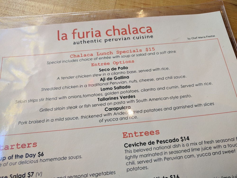 Vegetarian and vegan options abound, with dishes crafted to cater to all dietary preferences. The atmosphere is vibrant, enhanced by live music that complements your dining experience. Customers rave about the stellar service and welcoming ambiance, making it a perfect spot for families, groups, or a romantic dinner. With catering options and a full bar, La Furia Chalaca is more than a restaurant; it's a culinary destination that encourages you to return for more.